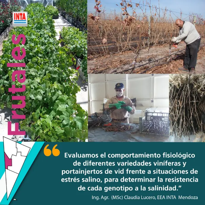 Evaluamos el comportamiento de plantas de vid en macetas de diferentes variedades viníferas y americanas frente a situaciones de estrés salino, determinando su contenido iónico luego del riego con agua salina.